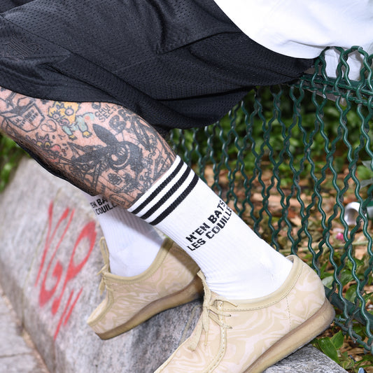 M'EN BATS LES COUILLES WHITE - BLACK SOCKS