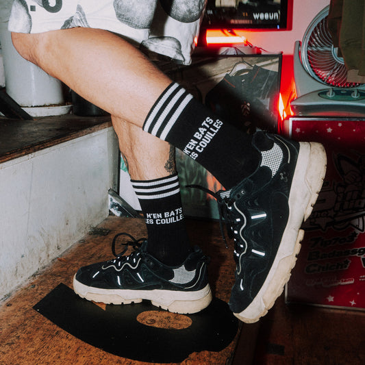 M'EN BATS LES COUILLES WHITE - BLACK SOCKS