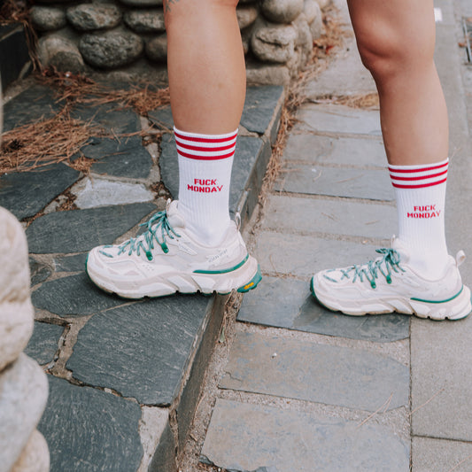 FUCK MONDAY RED - WHITE SOCKS