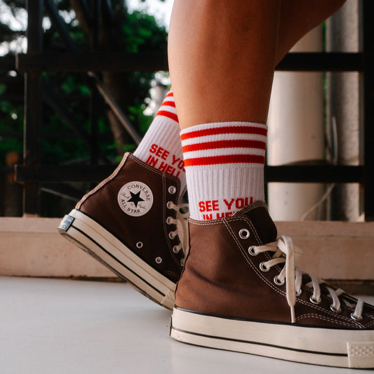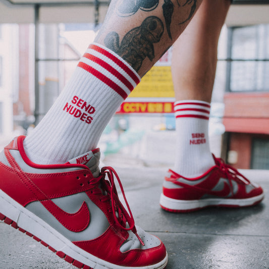 M'EN BATS LES COUILLES RED - WHITE SOCKS